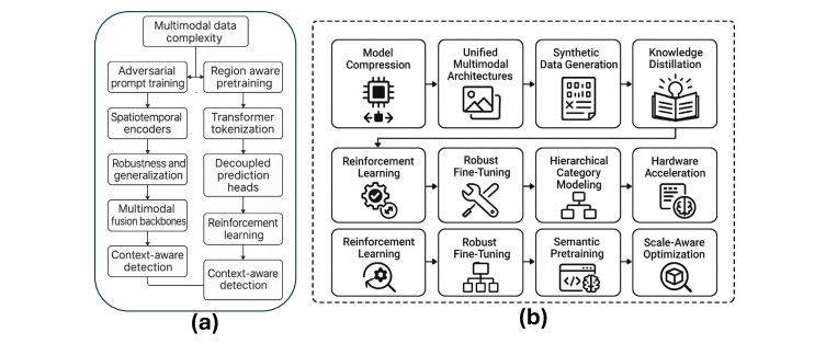 The path forward likely involves several complementary strategies. Model compression techniques including quantization, pruning, and knowledge distillation could enable LVLM deployment on edge devices. LoRA-based tuning offers parameter-efficient fine-tuning by updating only small trainable matrices within transformer layers, making adaptation more accessible. Reinforcement learning with carefully designed reward functions shows promise for improving localization precision and reducing hallucinations.